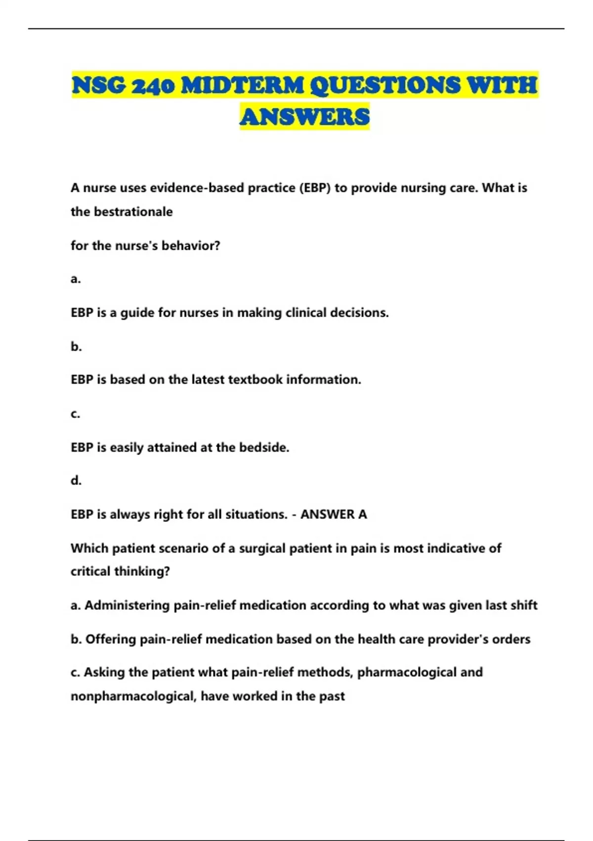 NSG 240 MIDTERM QUESTIONS WITH ANSWERS...