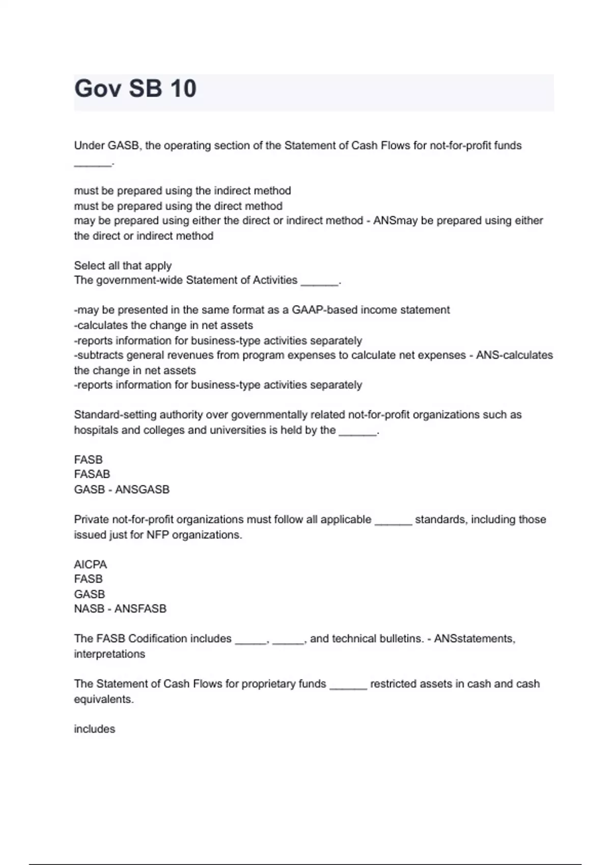 Gov SB 10 Test Bank
