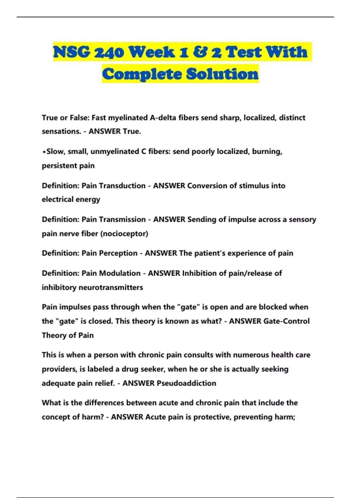NSG 240 Week 1 & 2 Test With Complete Solution...
