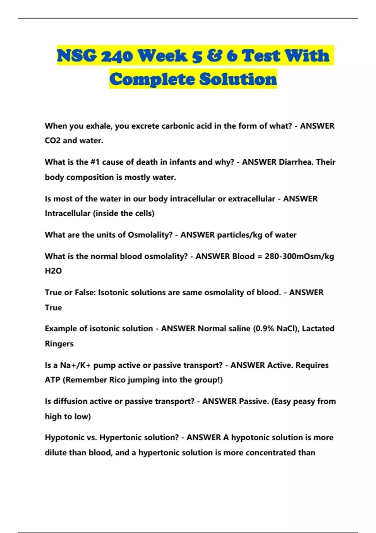 NSG 240 Week 5 & 6 Test With Complete Solution...