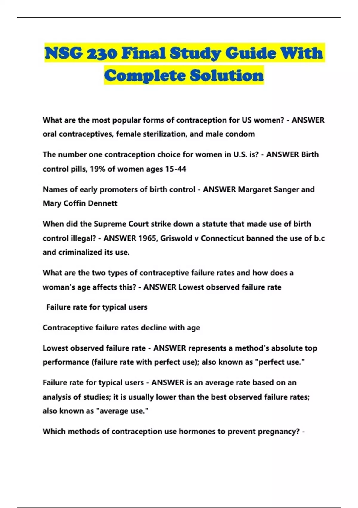 NSG 230 Final Study Guide With Complete Solution...