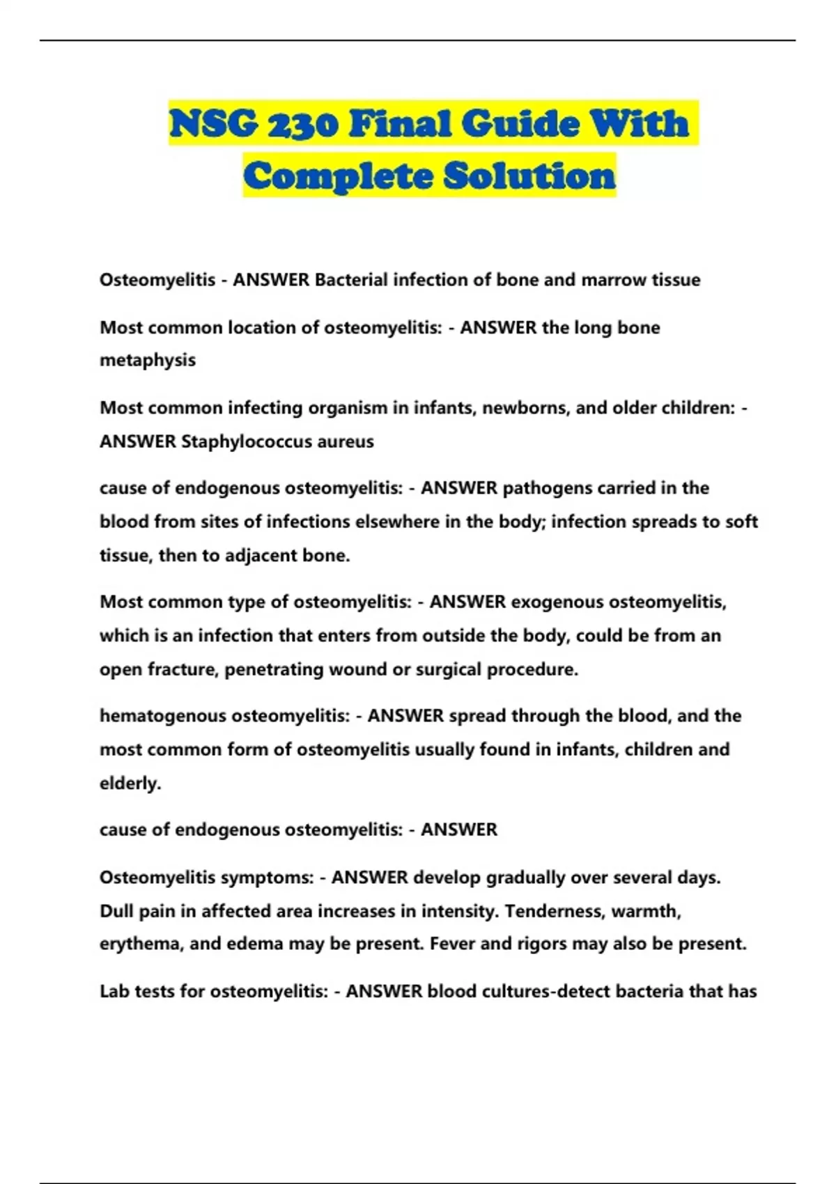 NSG 230 Final Guide With Complete Solution...