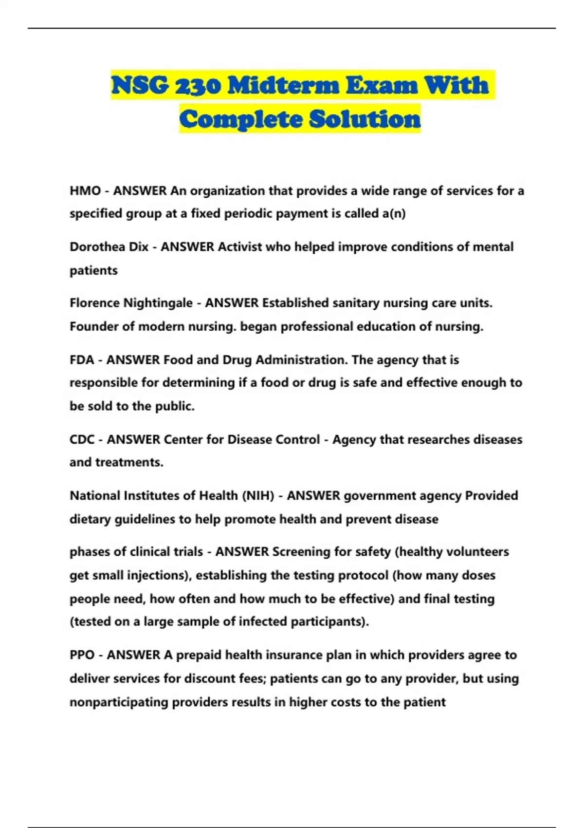 NSG 230 Midterm Exam With Complete Solution
