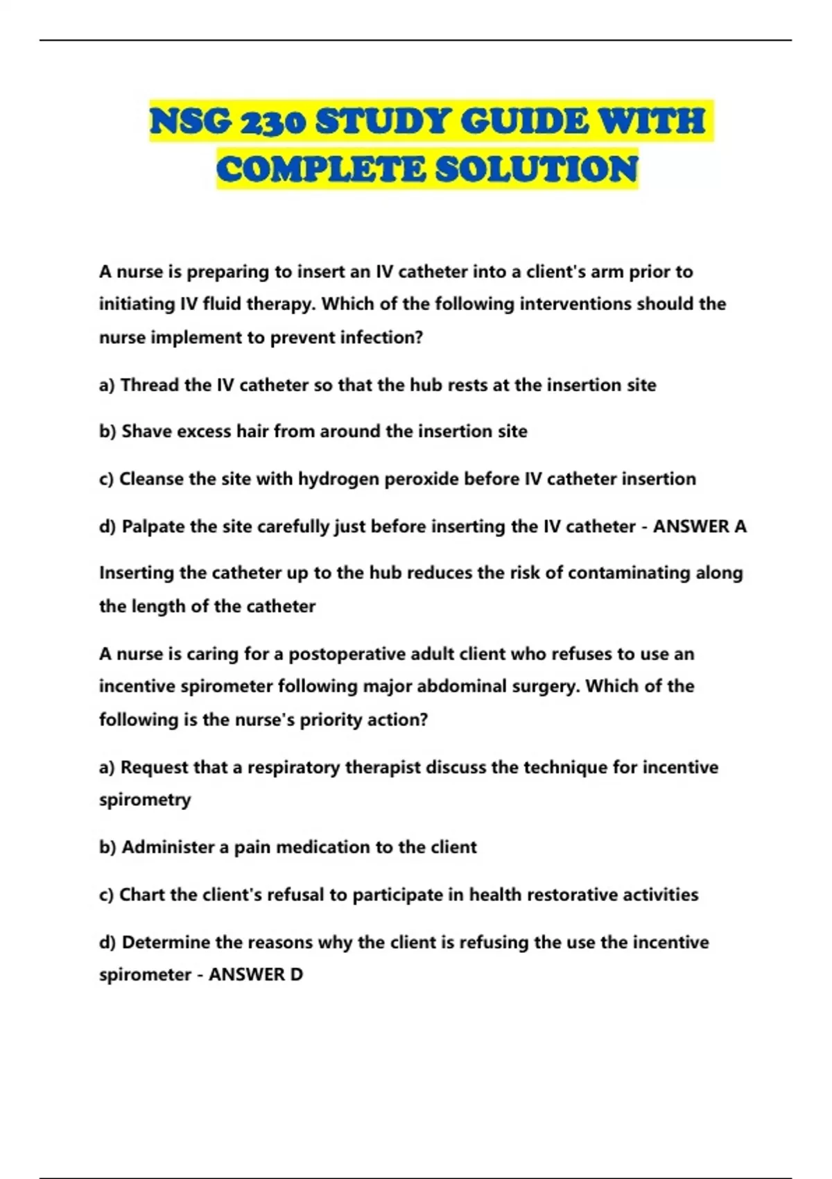 NSG 230 STUDY GUIDE WITH COMPLETE SOLUTION