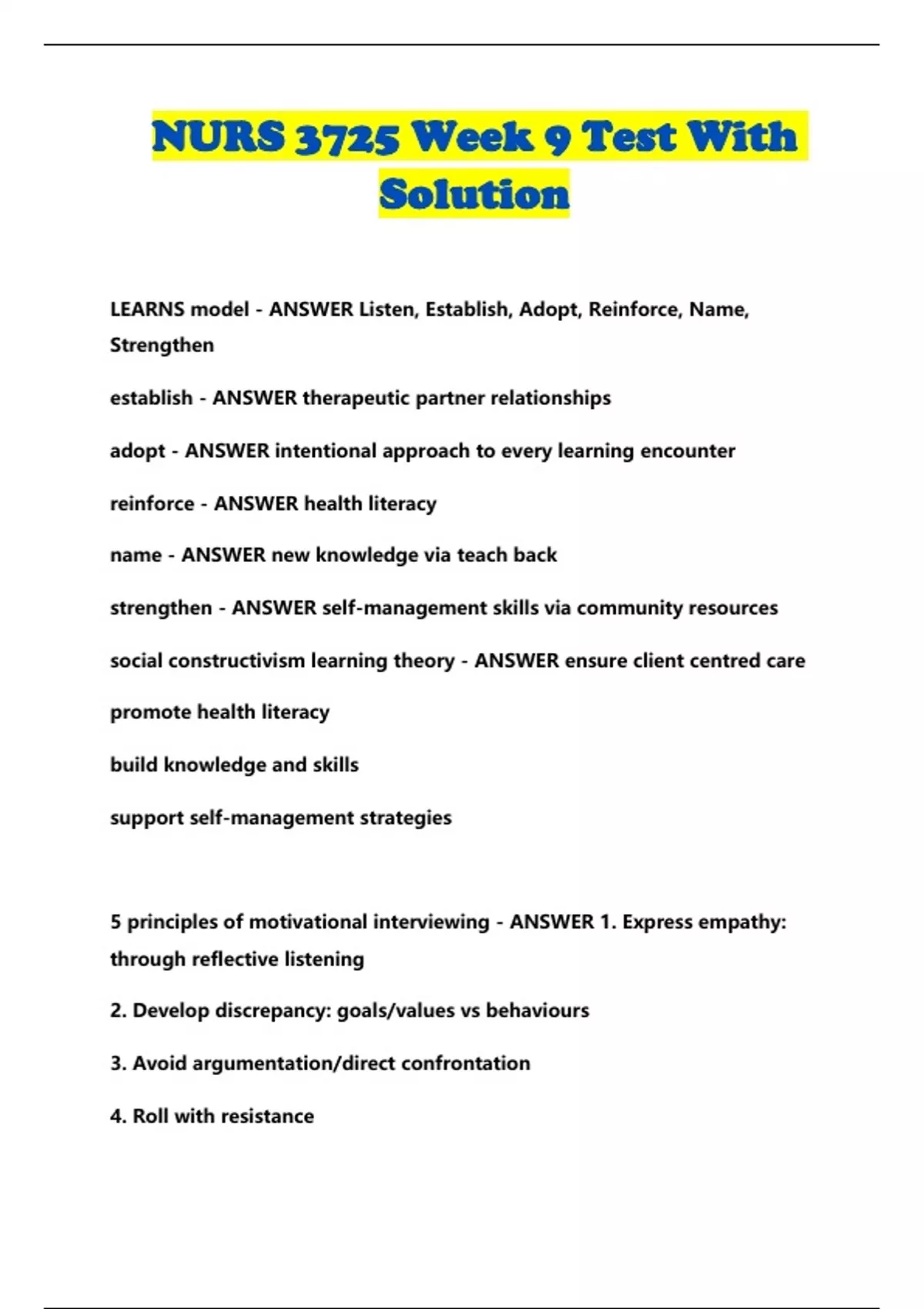 NURS 3725 Week 9 Test With Solution...
