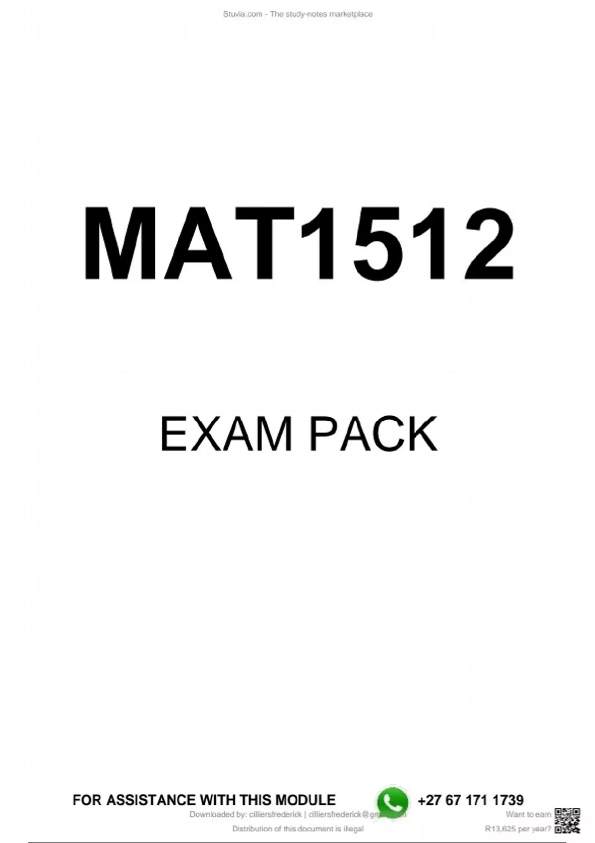 Mat1512 exam pack with solutions 2024. Excellent solution exam documents and solutions that shows every step and the similarity in questions year after year. Will really yield great marks for the exam.