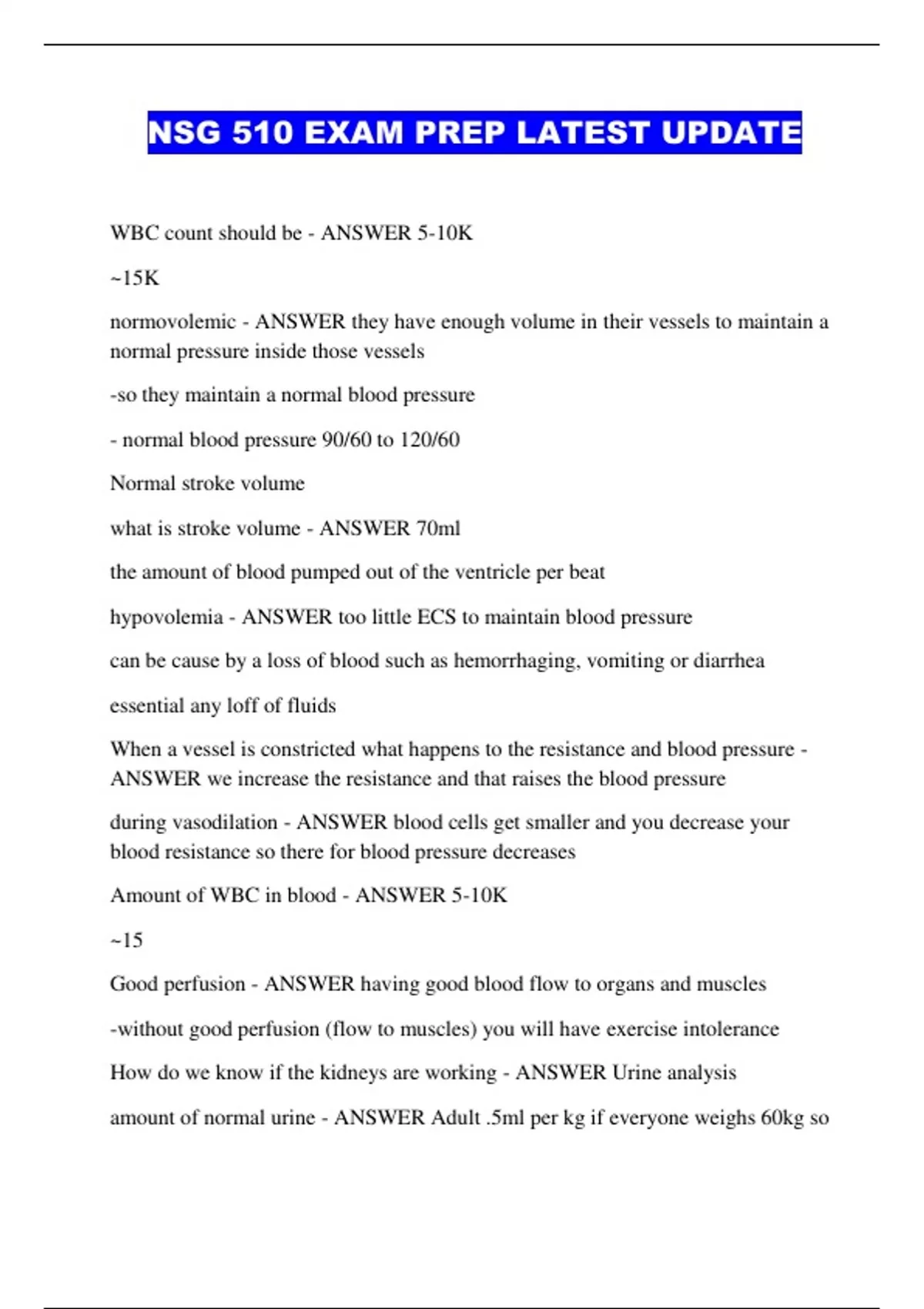 NSG 510 EXAM PREP LATEST UPDATE