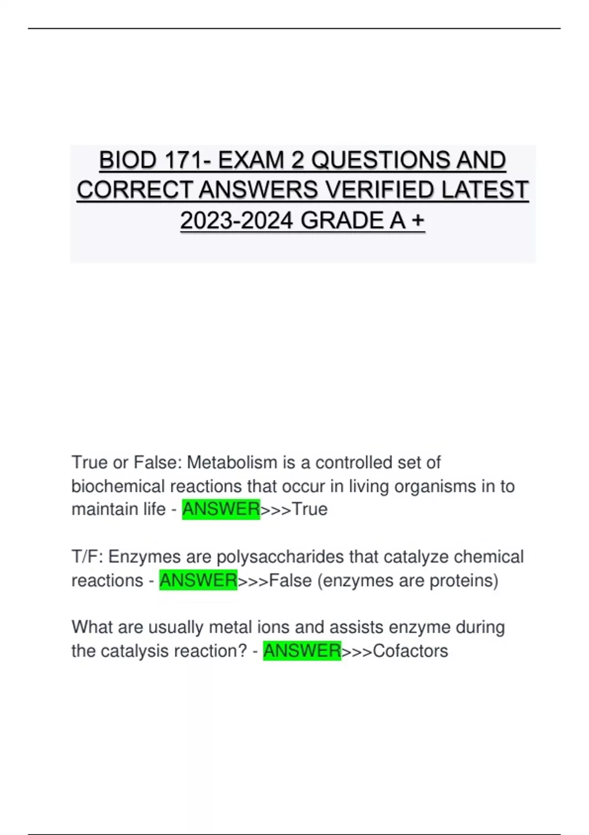 BIOD 171- EXAM 2 QUESTIONS AND CORRECT ANSWERS VERIFIED LATEST GRADE A + BIOD 171- EXAM 2 QUESTIONS AND CORRECT ANSWERS VERIFIED LATEST GRADE A + BIOD 171- EXAM 2 QUESTIONS AND CORRECT ANSWERS VERIFIED LATEST GRADE A + BIOD 171- EXAM 2 QUESTIONS AND CORRECT ANSWERS VERIFIED LATEST GRADE A + BIOD 171- EXAM 2 QUESTIONS AND CORRECT ANSWERS VERIFIED LATEST GRADE A + BIOD 171- EXAM 2 QUESTIONS AND CORRECT ANSWERS VERIFIED LATEST GRADE A +