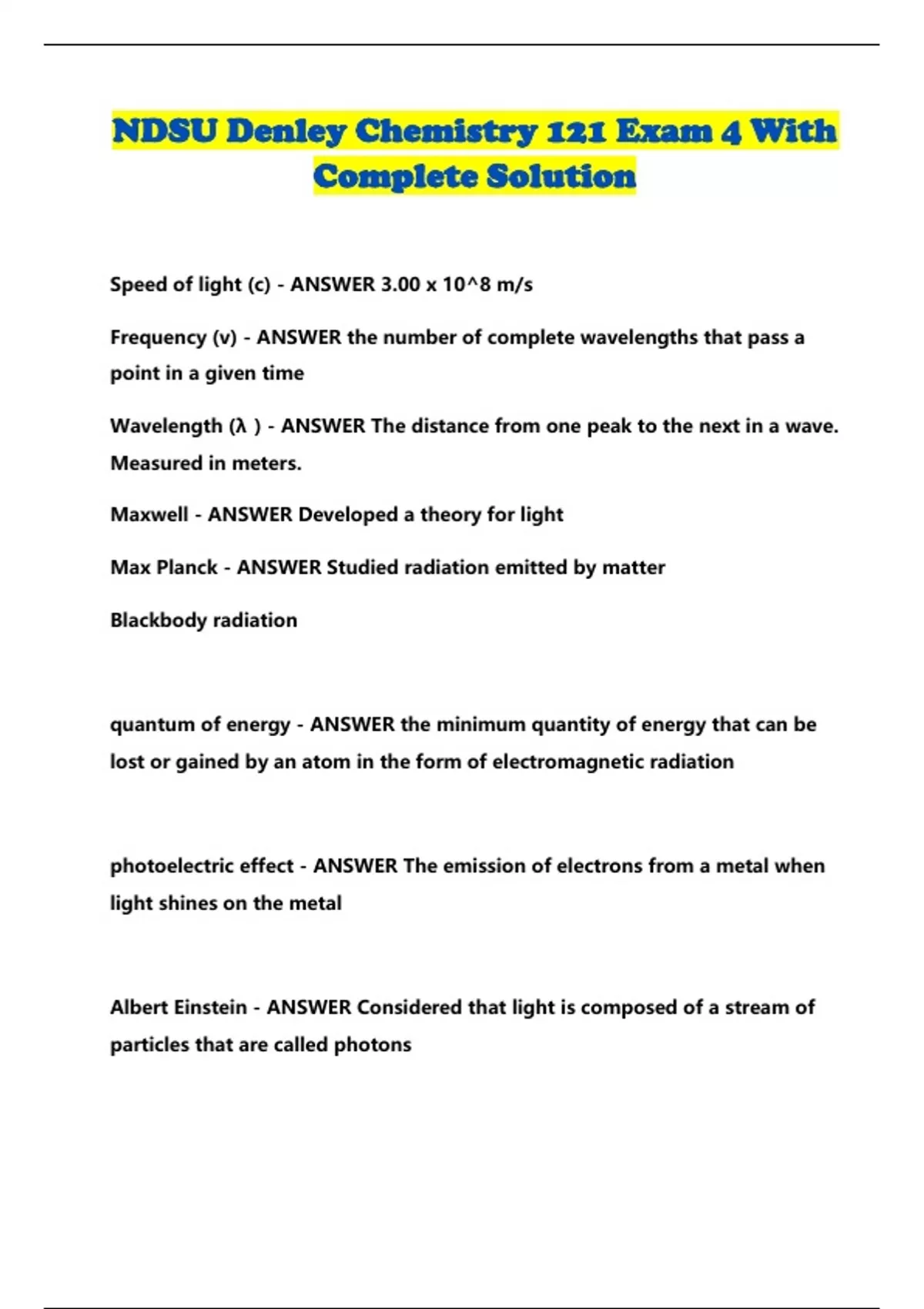 NDSU Denley Chemistry 121 Exam 4 With Complete Solution...