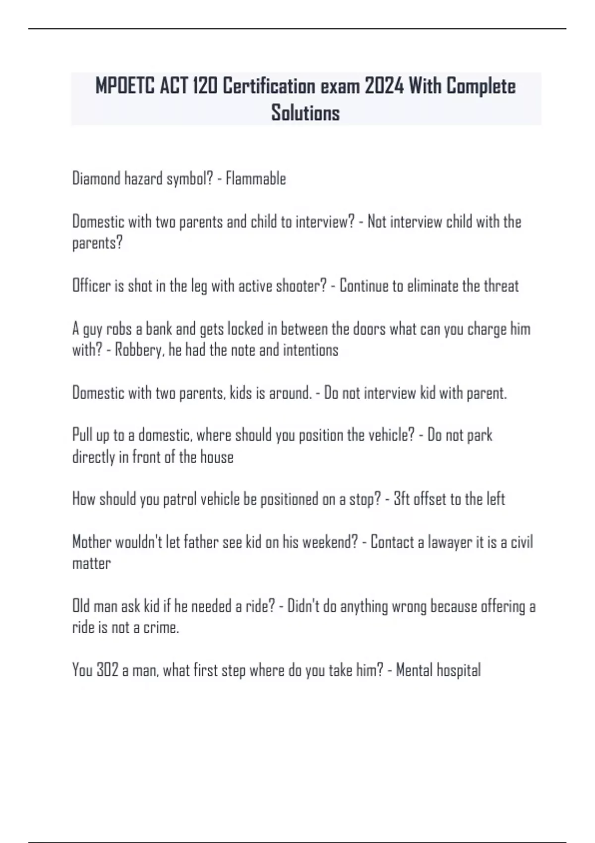 MPOETC ACT 120 Certification exam 2024 With Complete Solutions