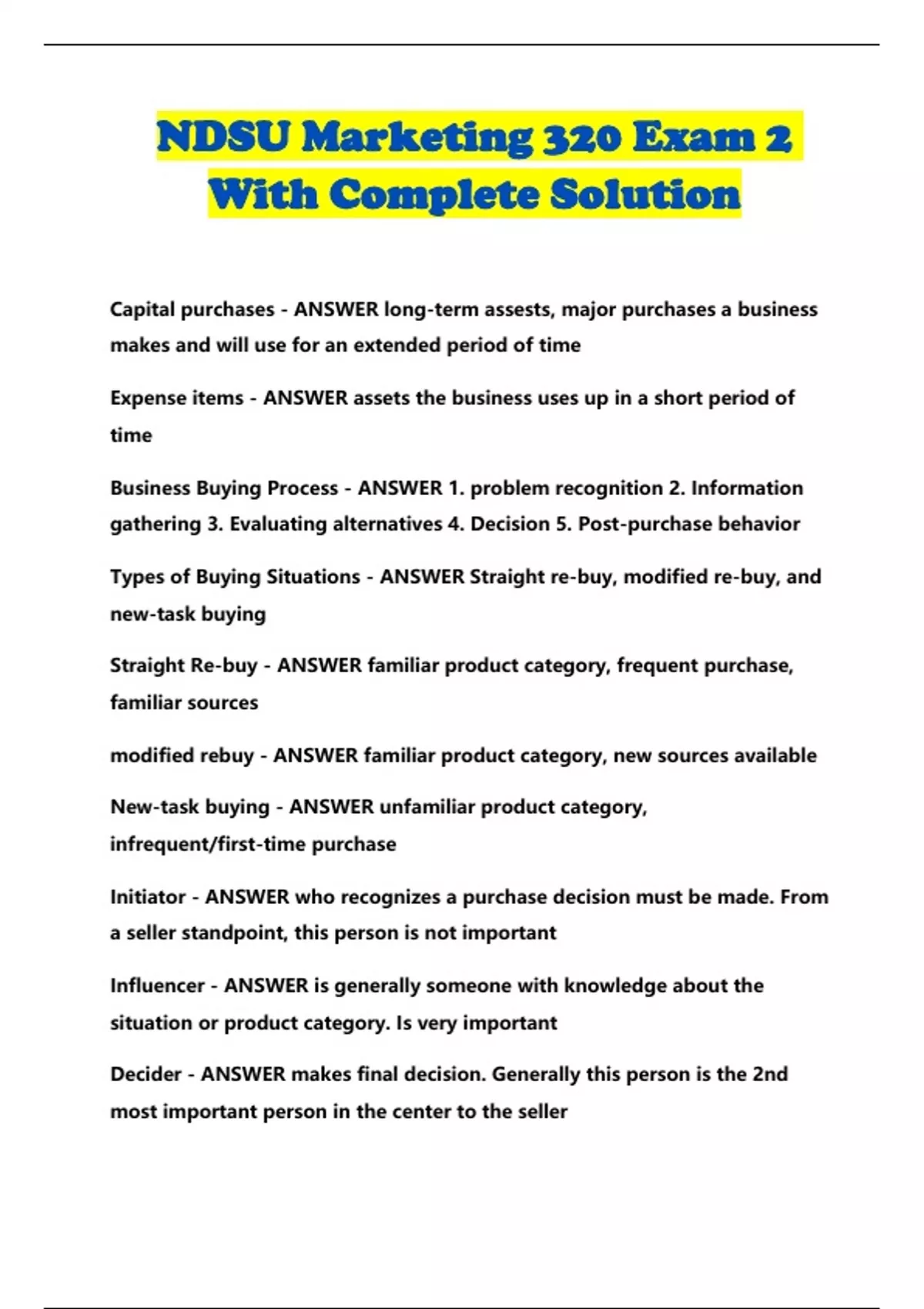ndsu marketing 320 exam 2 with complete solution