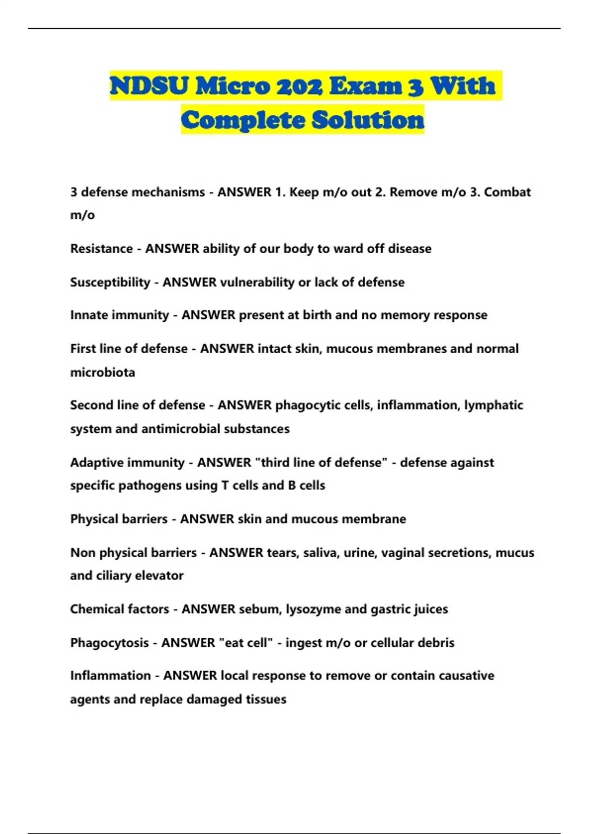 NDSU Micro 202 Exam 3 With Complete Solution...