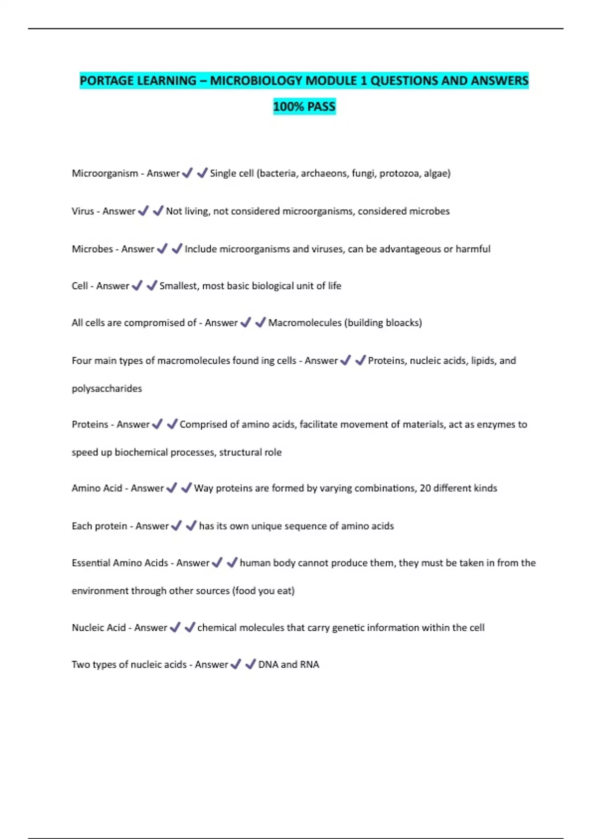 PORTAGE LEARNING – MICROBIOLOGY MODULE 1 QUESTIONS AND ANSWERS 100% PASS
