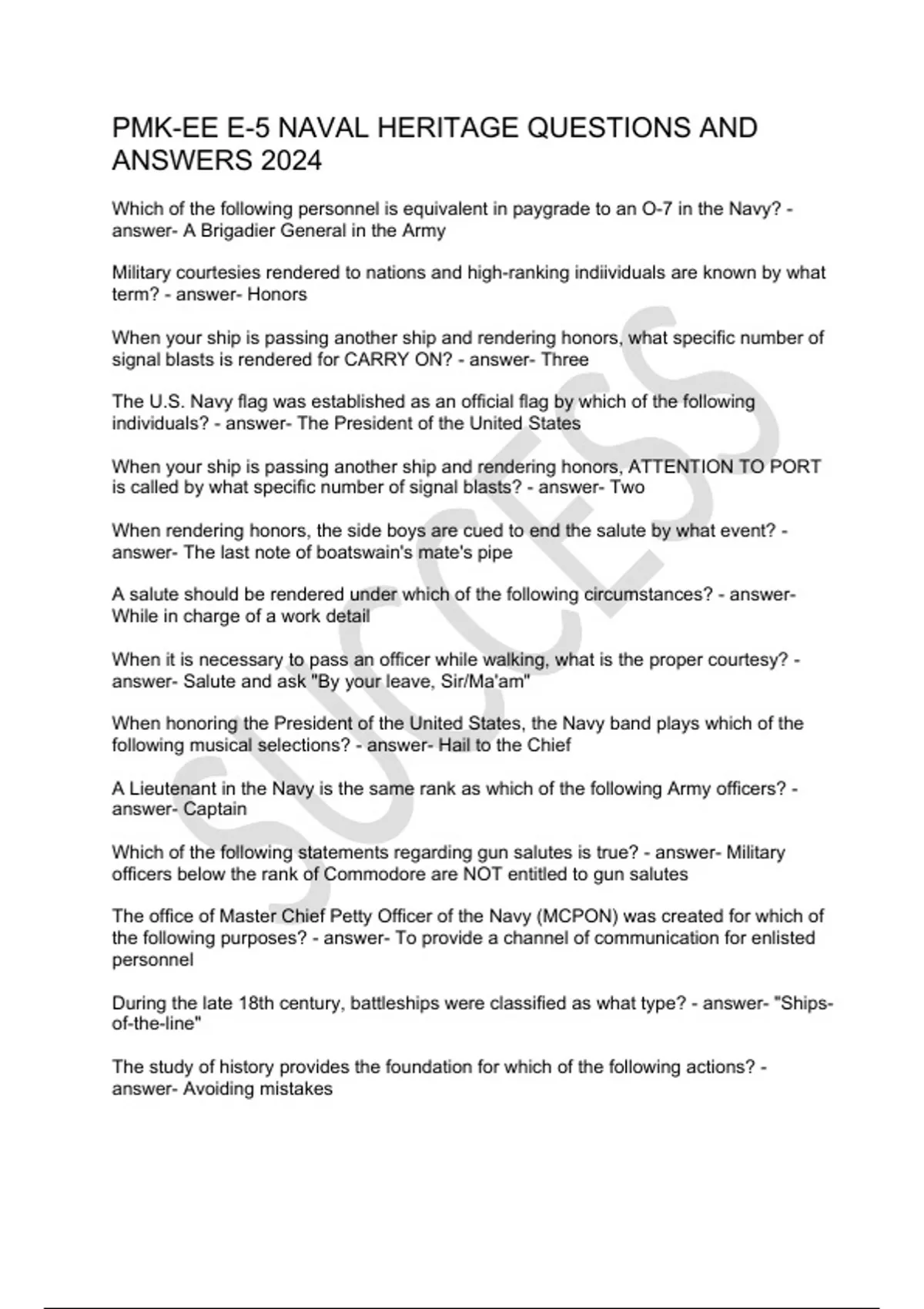 PMK-EE E-5 NAVAL HERITAGE QUESTIONS AND ANSWERS 2024
