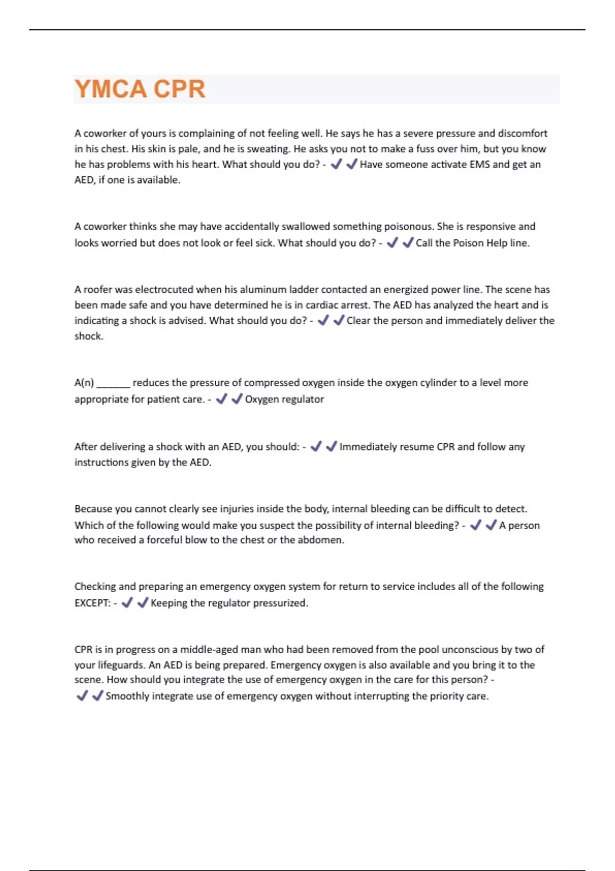YMCA CPR QUESTIONS & ANSWERS SCORED A+ TO PASS