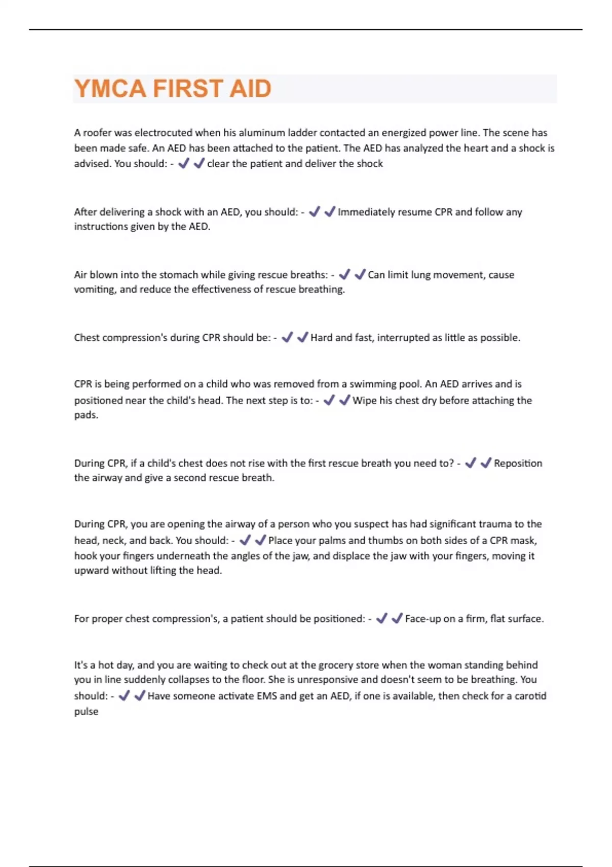 YMCA FIRST AID QUESTIONS WITH 100% VERIFIED SOLUTIONS