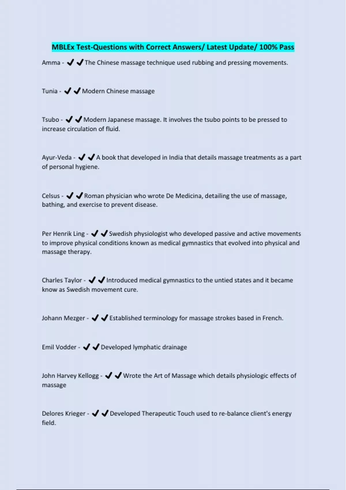 MBLEx Test-Questions with Correct Answers/ Latest Update/ 100% Pass