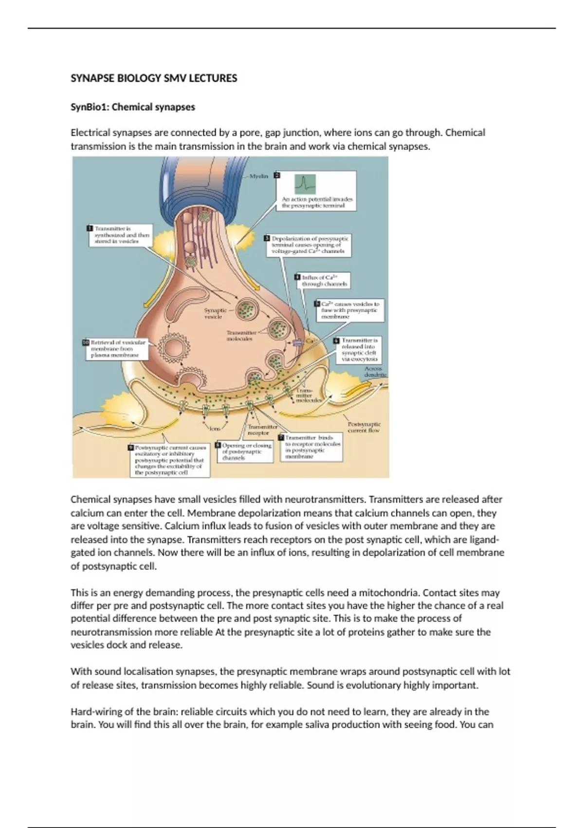 Summary lectures synapse biology part of From Molecule to Mind from master Neurosciences VU