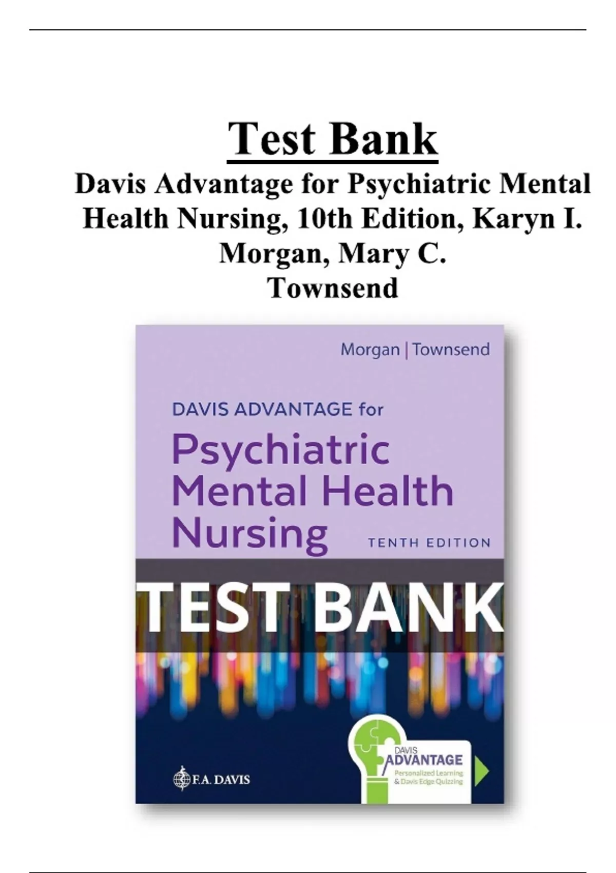 Davis Advantage for Psychiatric Mental Health Nursing, 10th Edition Test Bank, Karyn I. Morgan, Mary C. Townsend All Chapters (1-43)|A+ ULTIMATE GUIGE 2023