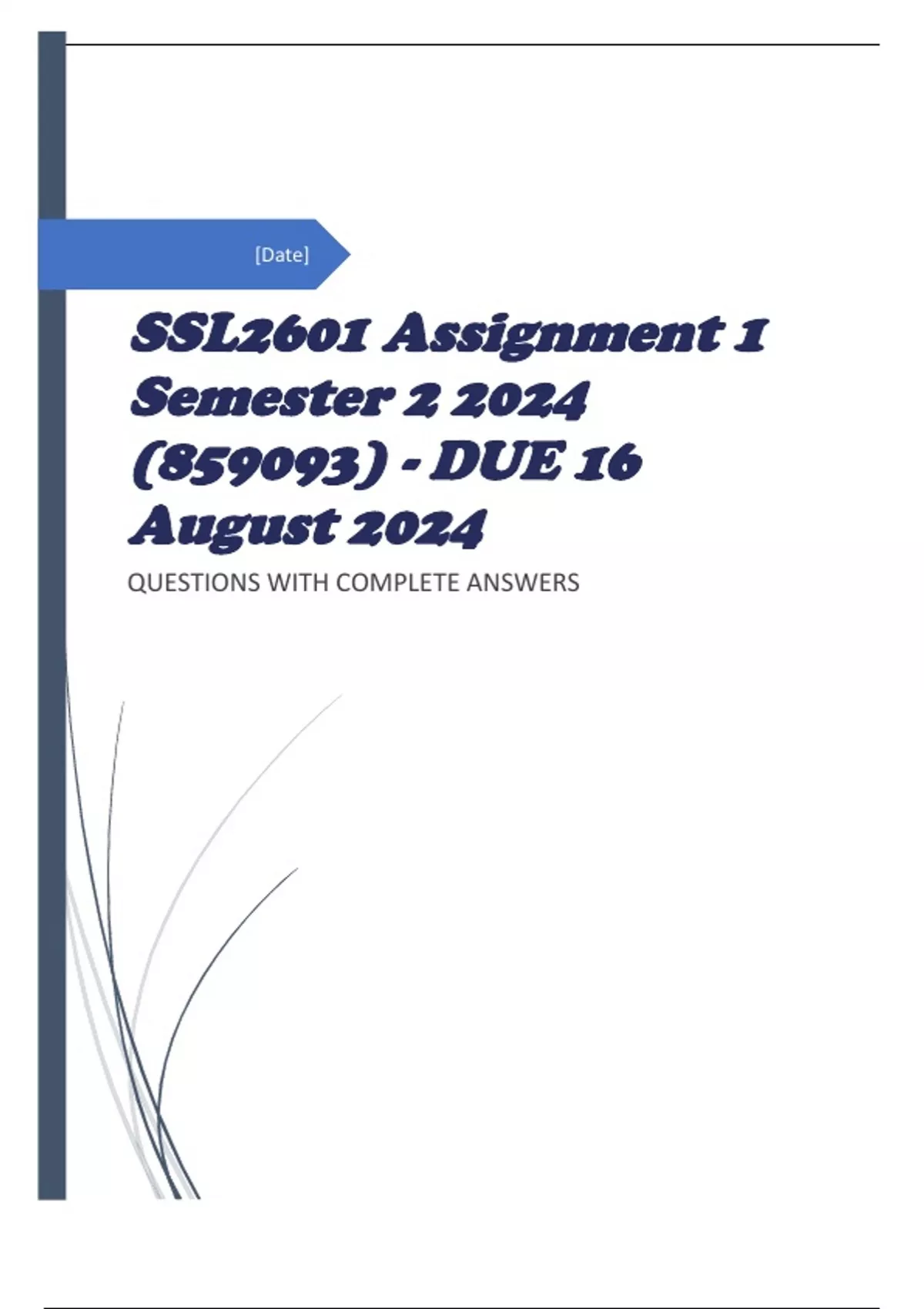QUESTIONS AND ANSWERS SSL2601 Assignment 1 Semester 2 2024 (859093) - DUE 16 August 2024