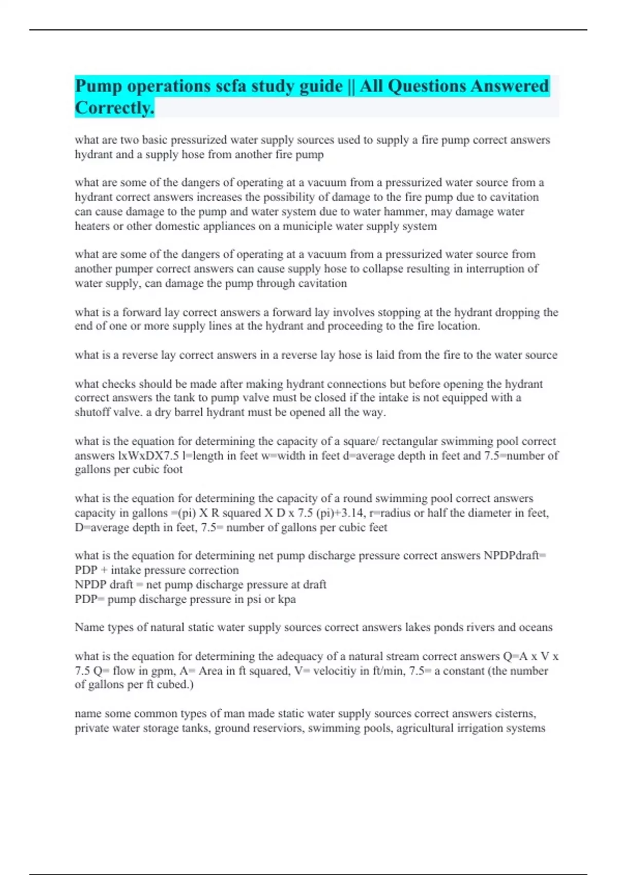 Pump operations scfa study guide || All Questions Answered Correctly.