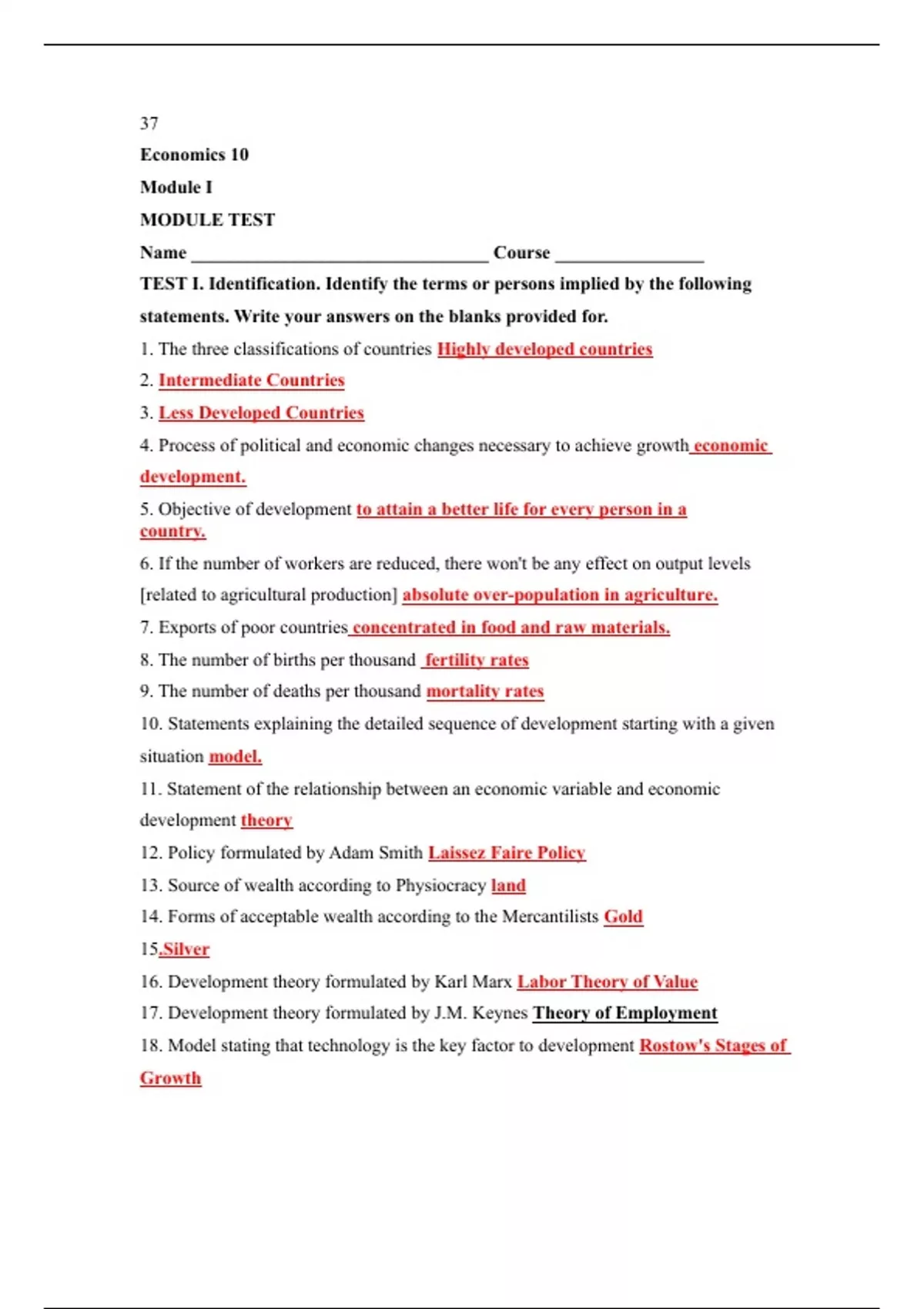 TEST I. Identification. Identify the terms or persons implied by the following