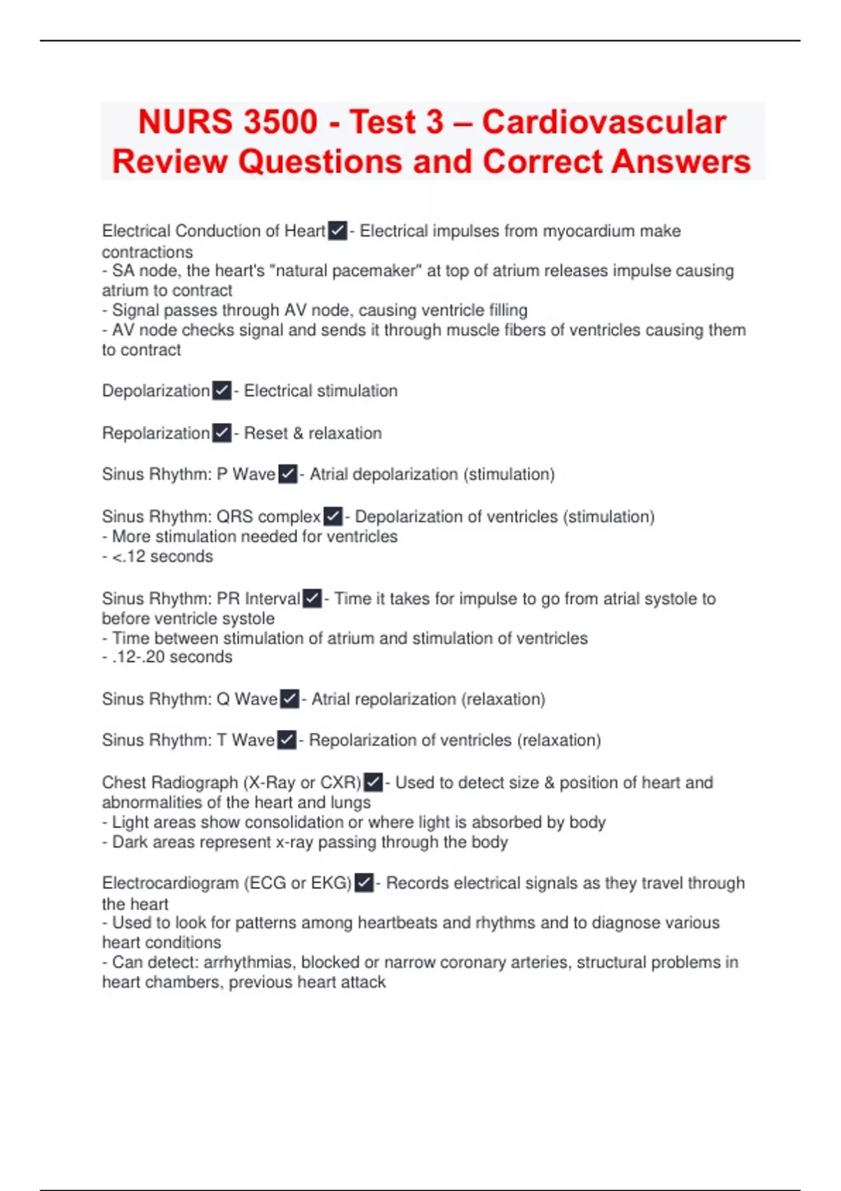 NURS 3500 - Test 3 – Cardiovascular Review Questions and Correct Answers