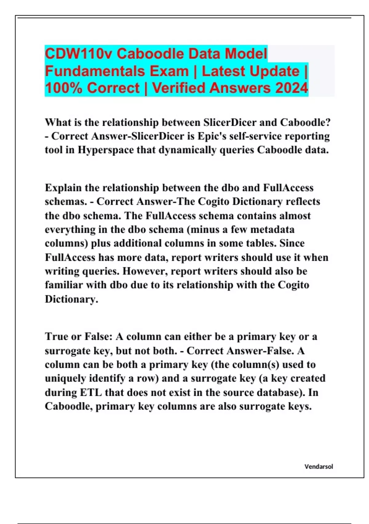 CDW110v Caboodle Data Model Fundamentals Exam | Latest Update | 100% Correct | Verified Answers 2024