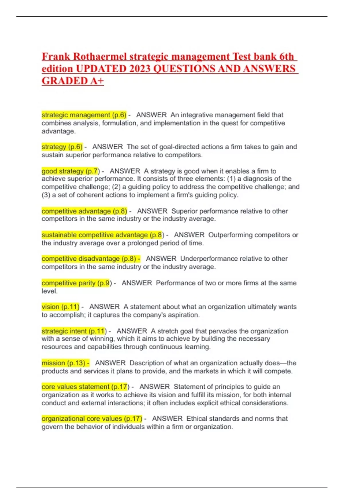 Frank Rothaermel strategic management Test bank 6th edition UPDATED 2023 QUESTIONS AND ANSWERS GRADED A+