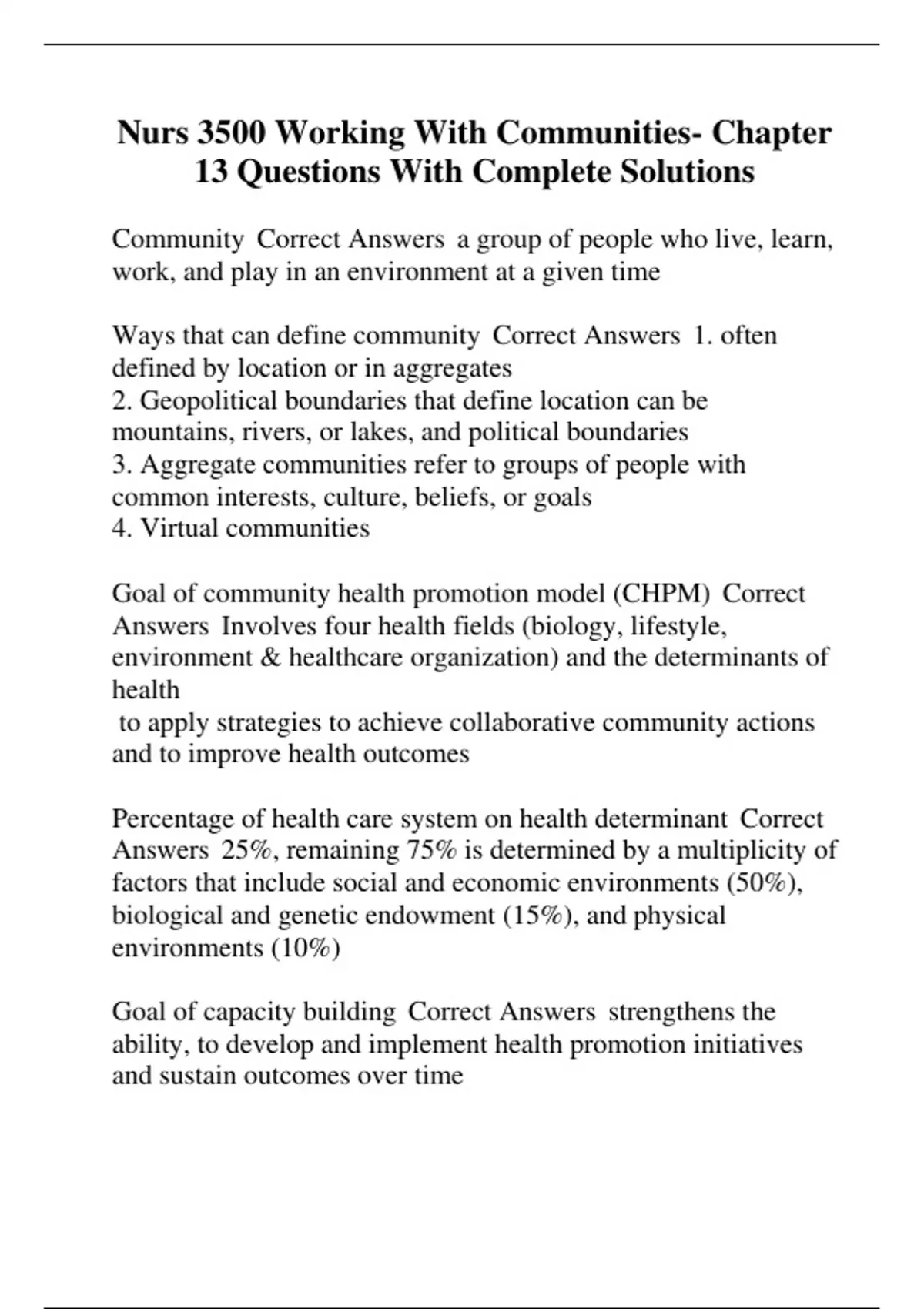 Nurs 3500 Working With Communities- Chapter 13 Questions With Complete Solutions