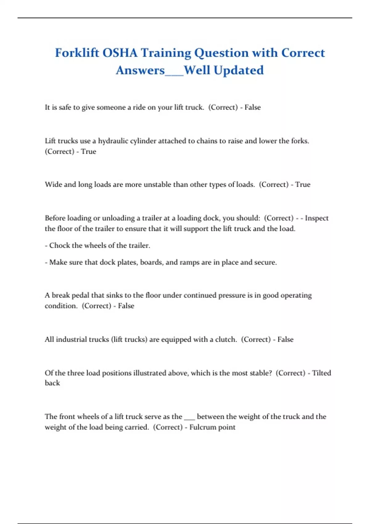 Forklift OSHA Training Question with Correct Answers___Well Updated