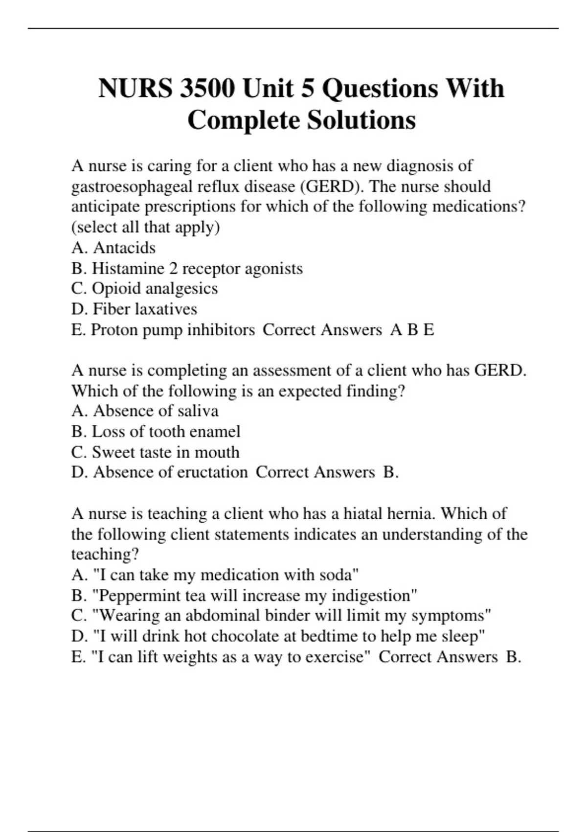 NURS 3500 Unit 5 Questions With Complete Solutions