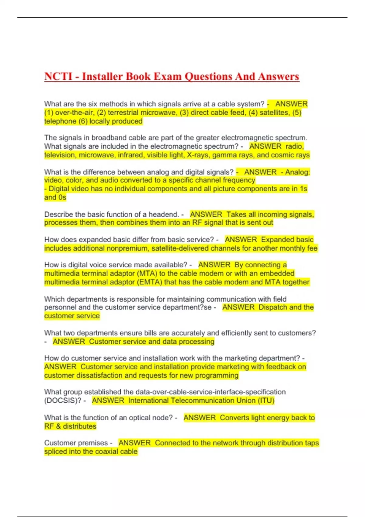 NCTI - Installer Book Exam Questions And Answers
