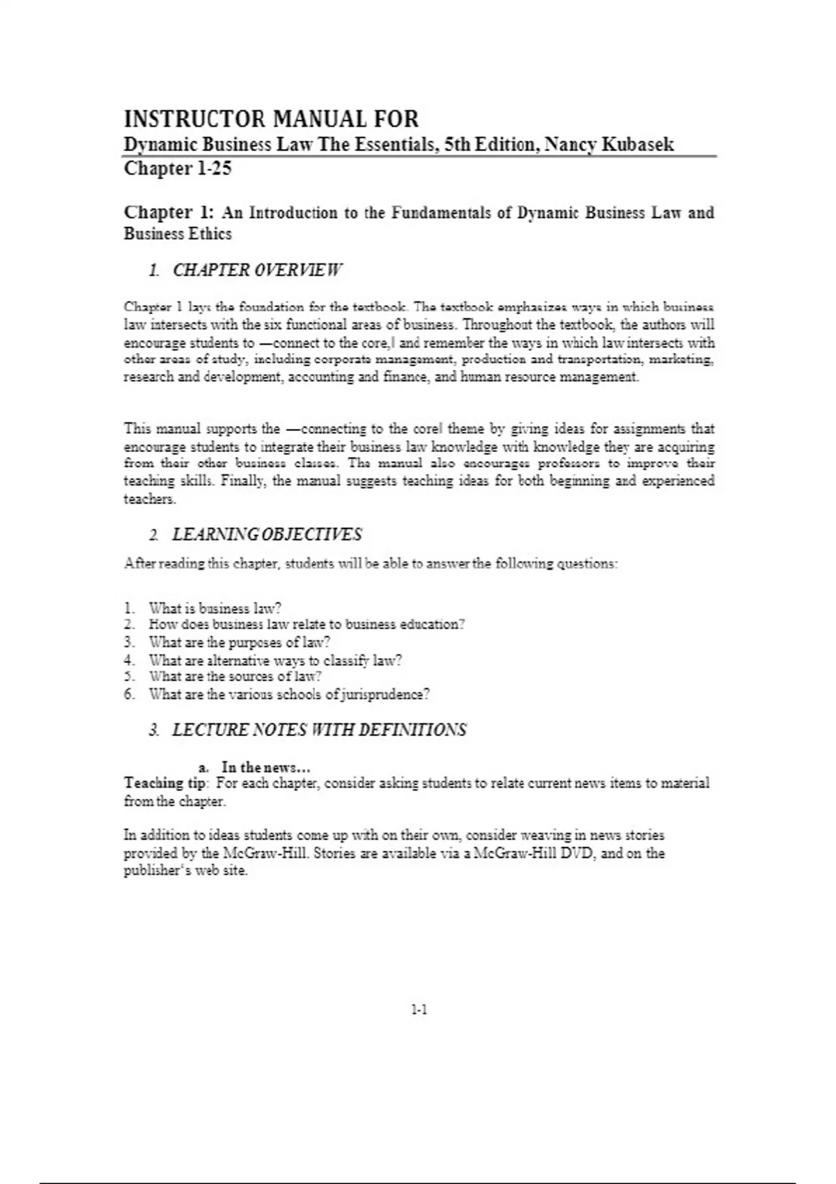 Instructor Solution Manual For Dynamic Business Law The Essentials, 5th Edition, Nancy Kubasek