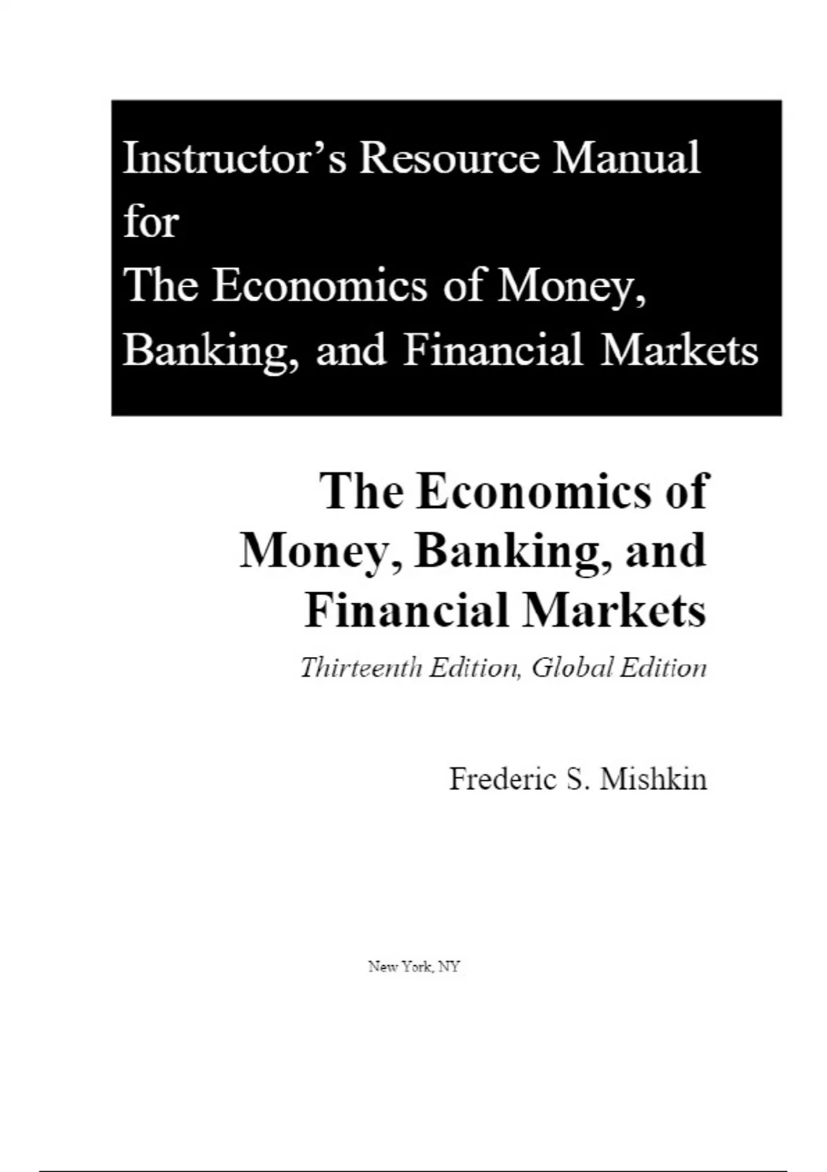 Solution Manual for The Economics Of Money Banking And Financial Markets 13th Global Edition Frederic Mishkin