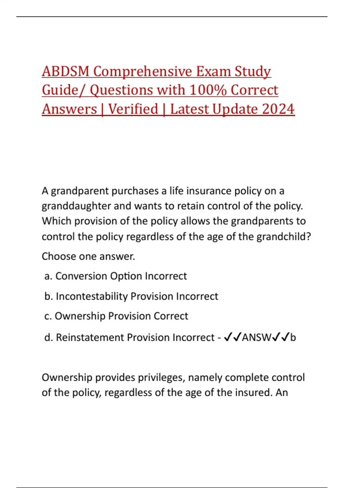 ABDSM Comprehensive Exam Study Guide/ Questions with 100% Correct Answers | Verified | Latest Update 2024