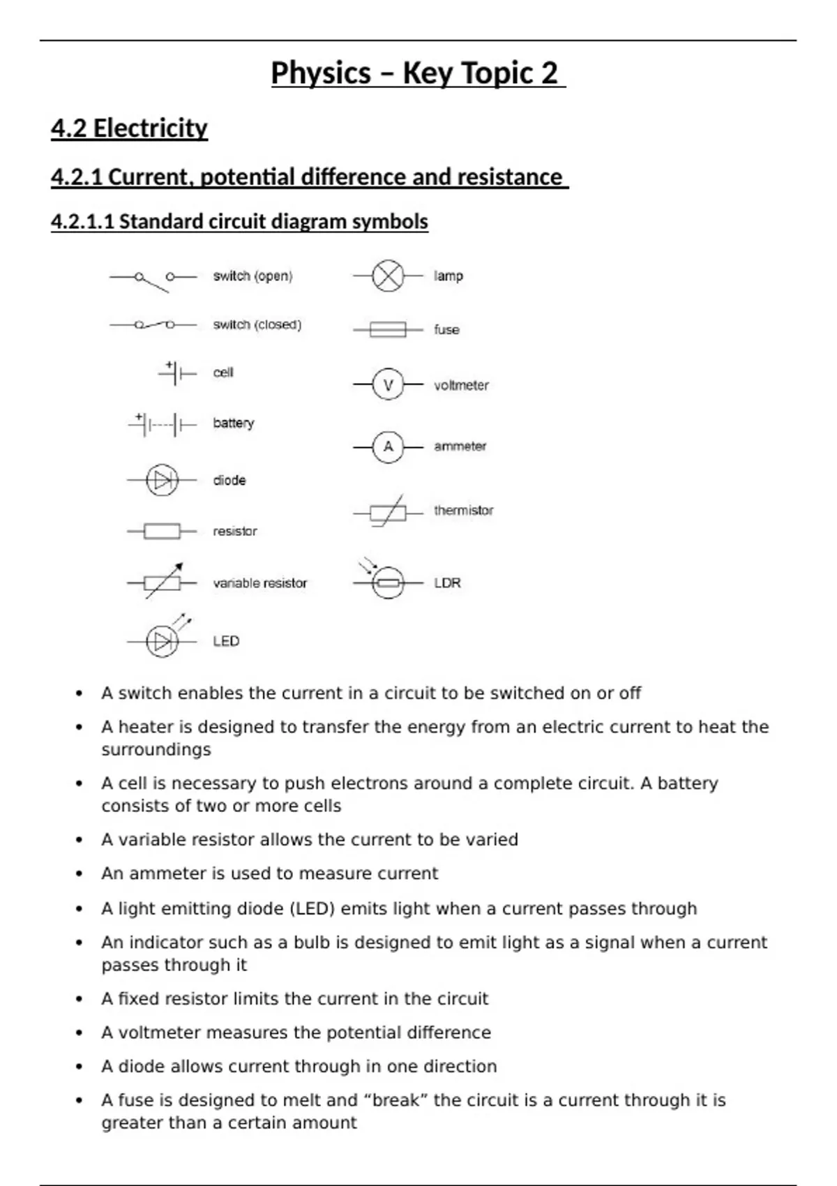 4.2.1 Current, potential difference and resistance