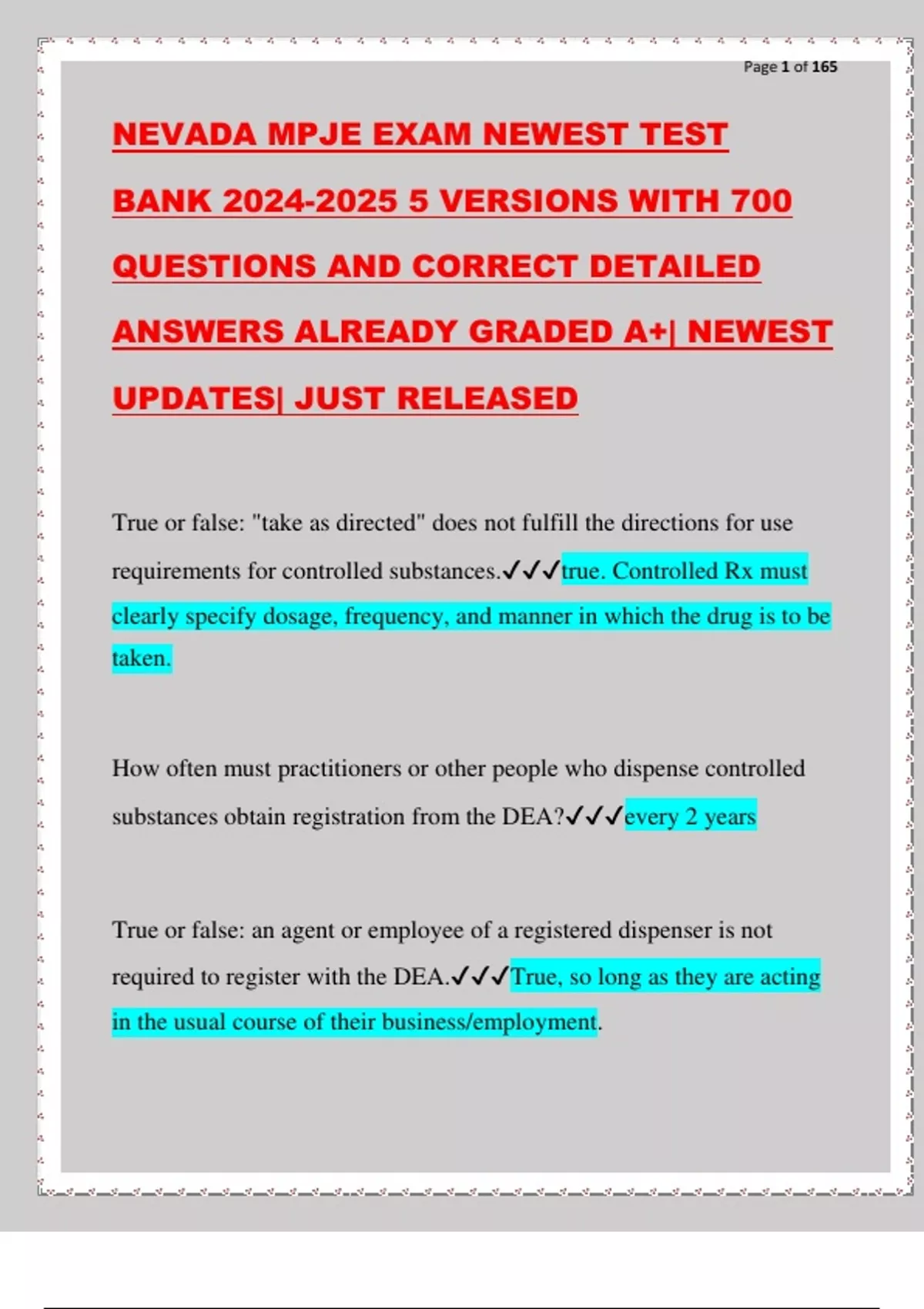 NEVADA MPJE EXAM NEWEST TEST BANK VERSIONS WITH 700 QUESTIONS AND CORRECT DETAILED ANSWERS ALREADY GRADED A+| NEWEST UPDATES| JUST RELEASED