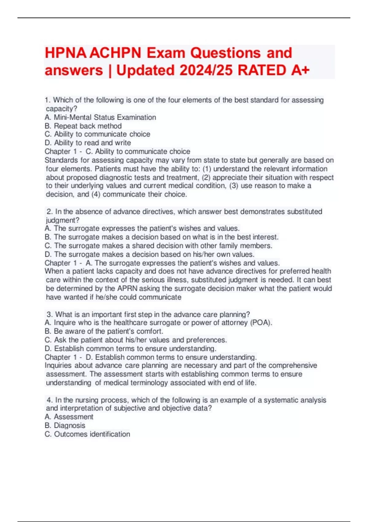 HPNA ACHPN Exam Questions and answers | Updated 2024/25 RATED A+