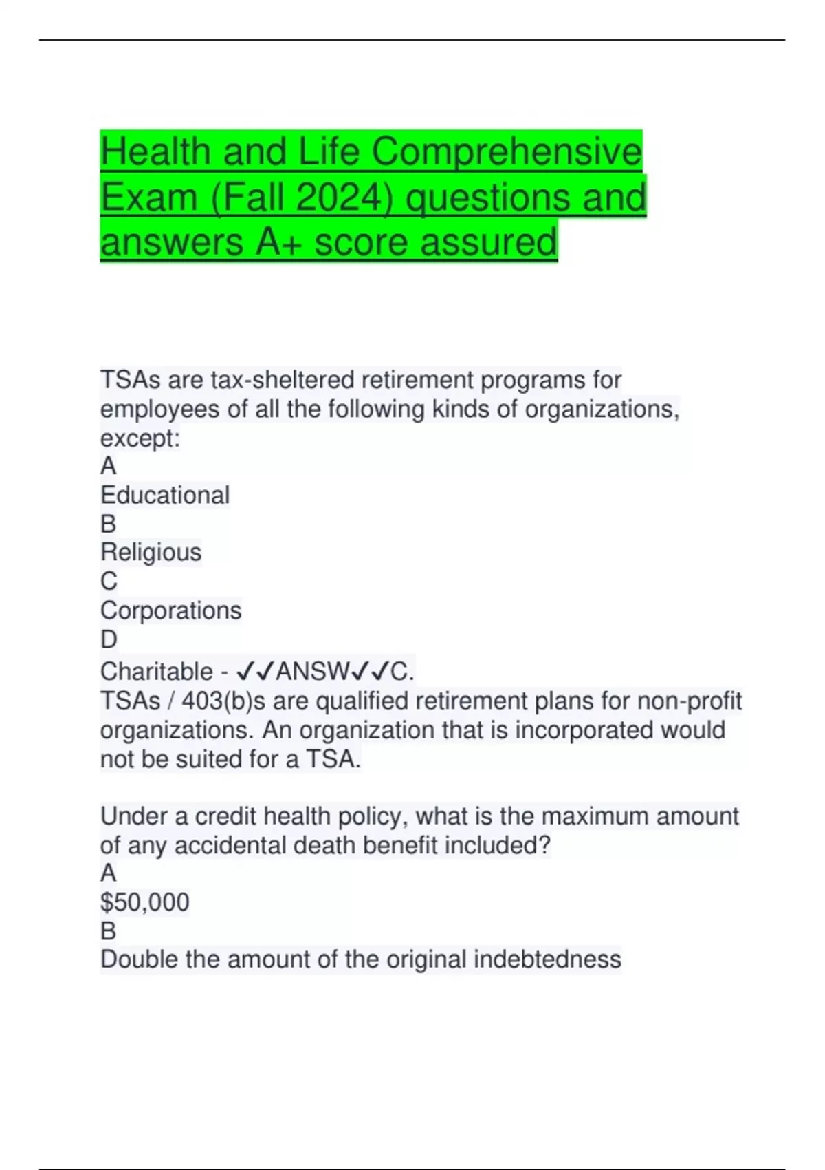 Health and Life Comprehensive Exam (Fall 2024) questions and answers A+ score assured