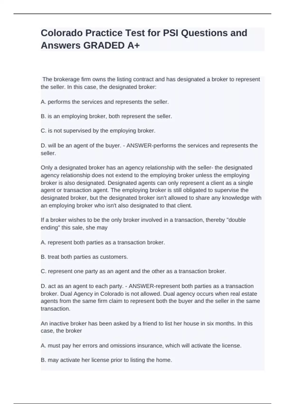 A. represent both parties as a transaction broker. B. treat both parties as customers. C. represent one party as an agent and the other as a transaction broker. D. act as an agent to each party. - ANSWER-represent both parties as a transaction broker. Dual Agency in Colorado is not allowed. Dual agency occurs when real estate agents from the same firm claim to represent both the buyer and the seller in the same transaction.