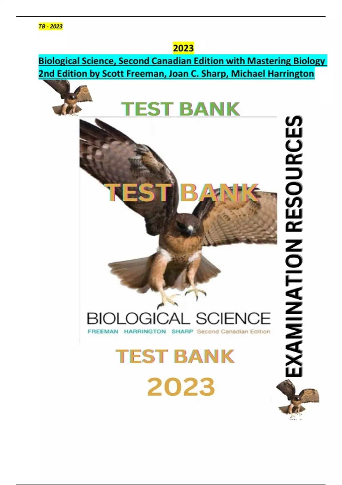 Exam Resources - TB for Biological Science, Second Canadian Edition with Mastering Biology 2nd Edition by Scott Freeman, Joan C. Sharp, Michael Harrington. Complete, Updated and Latest Test Bank. All Chapters (1-55) Included.