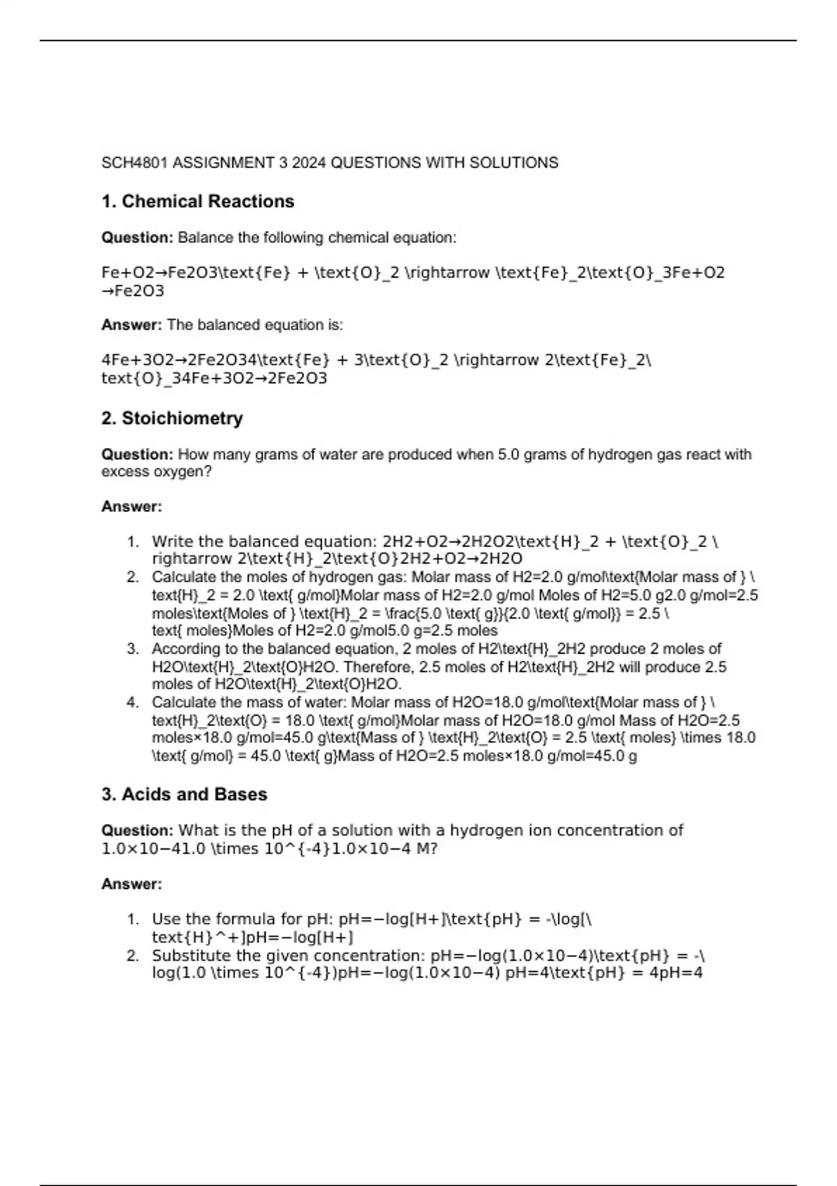 SCH4801 ASSIGNMENT 3 2024 QUESTIONS WITH SOLUTIONS 1. Chemical Reactions