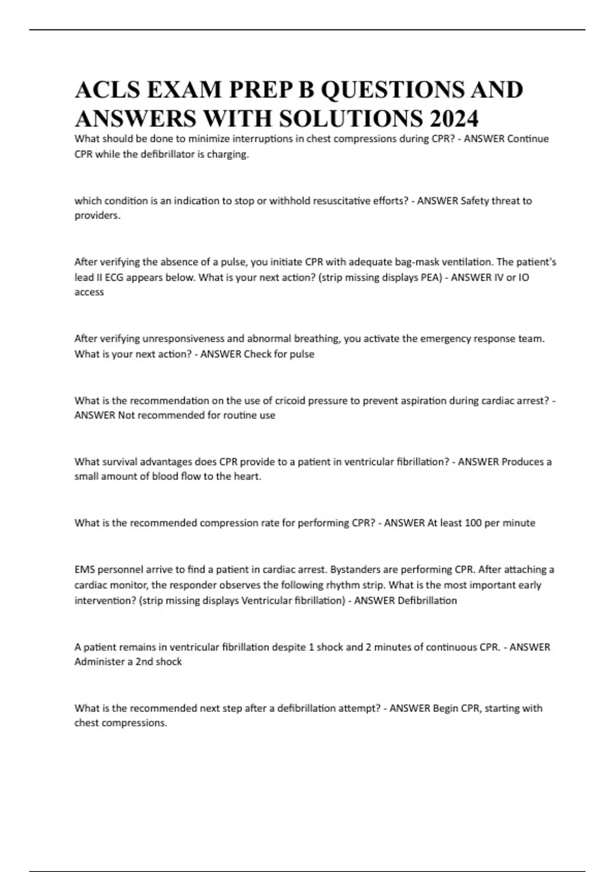 ACLS EXAM PREP B QUESTIONS AND ANSWERS WITH SOLUTIONS 2024