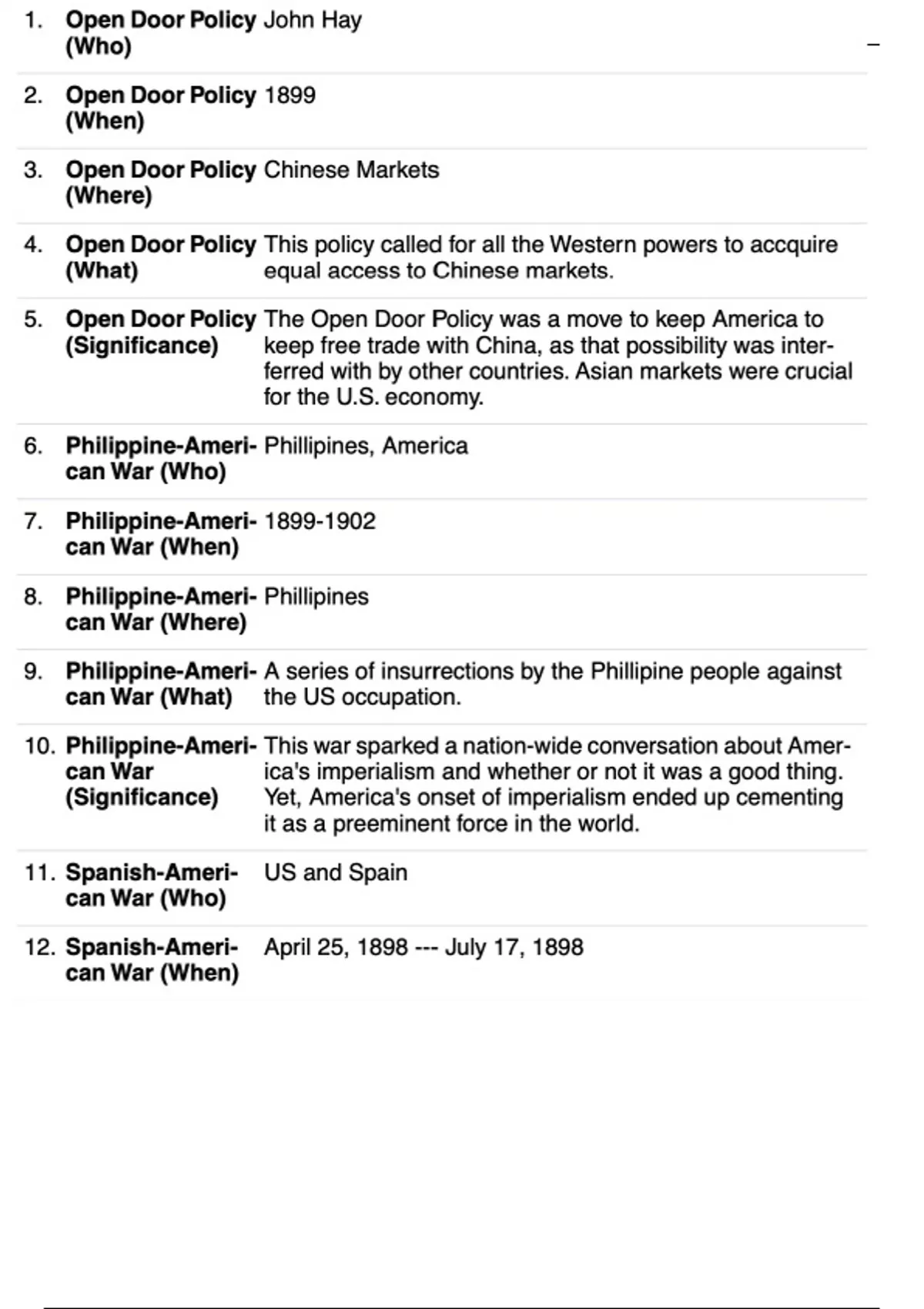 In-depth questions and answers to important US historical figures and events from the Indian Wars to the Chinese Exclusion Act. --- A total of 85 terms, however, for every topic there are five questions dedicated to it: Who, What, When, Where, & How. There are a total of 17 topics covered. --- The topics range from the Sand Creek Massacre, to the Homestead Act, to Spanish-American War, to Freedmen's Bureau, and more. ***Slight hint of teenager-humor
