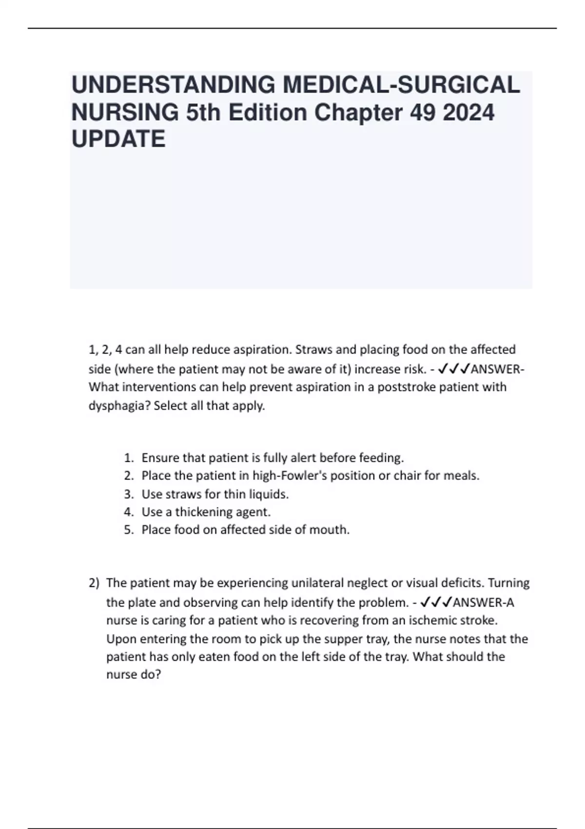 UNDERSTANDING MEDICAL-SURGICAL NURSING 5th Edition Chapter 49 2024 UPDATE