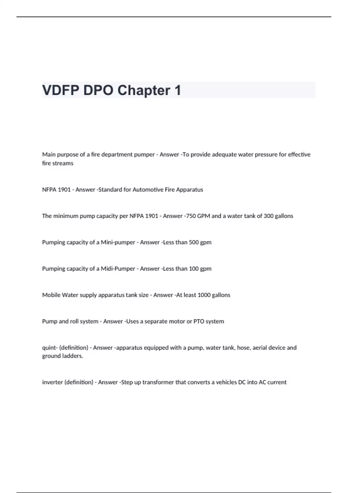 Main purpose of a fire department pumper - Answer -To provide adequate water pressure for effective