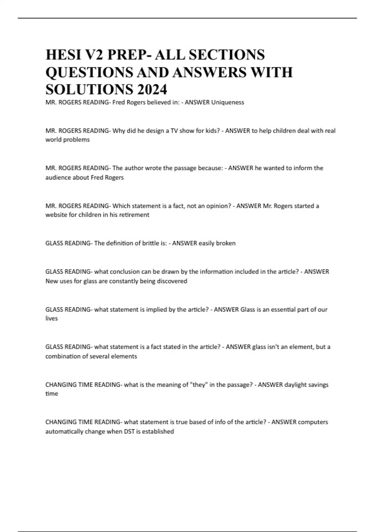 MR. ROGERS READING- The author wrote the passage because: - ANSWER he wanted to inform the