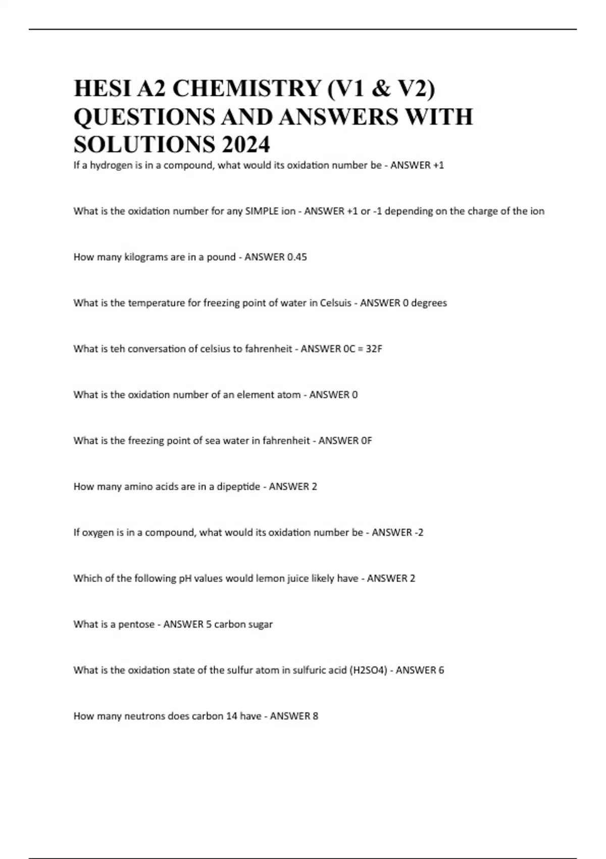 HESI A2 CHEMISTRY (V1 & V2) QUESTIONS AND ANSWERS WITH SOLUTIONS 2024