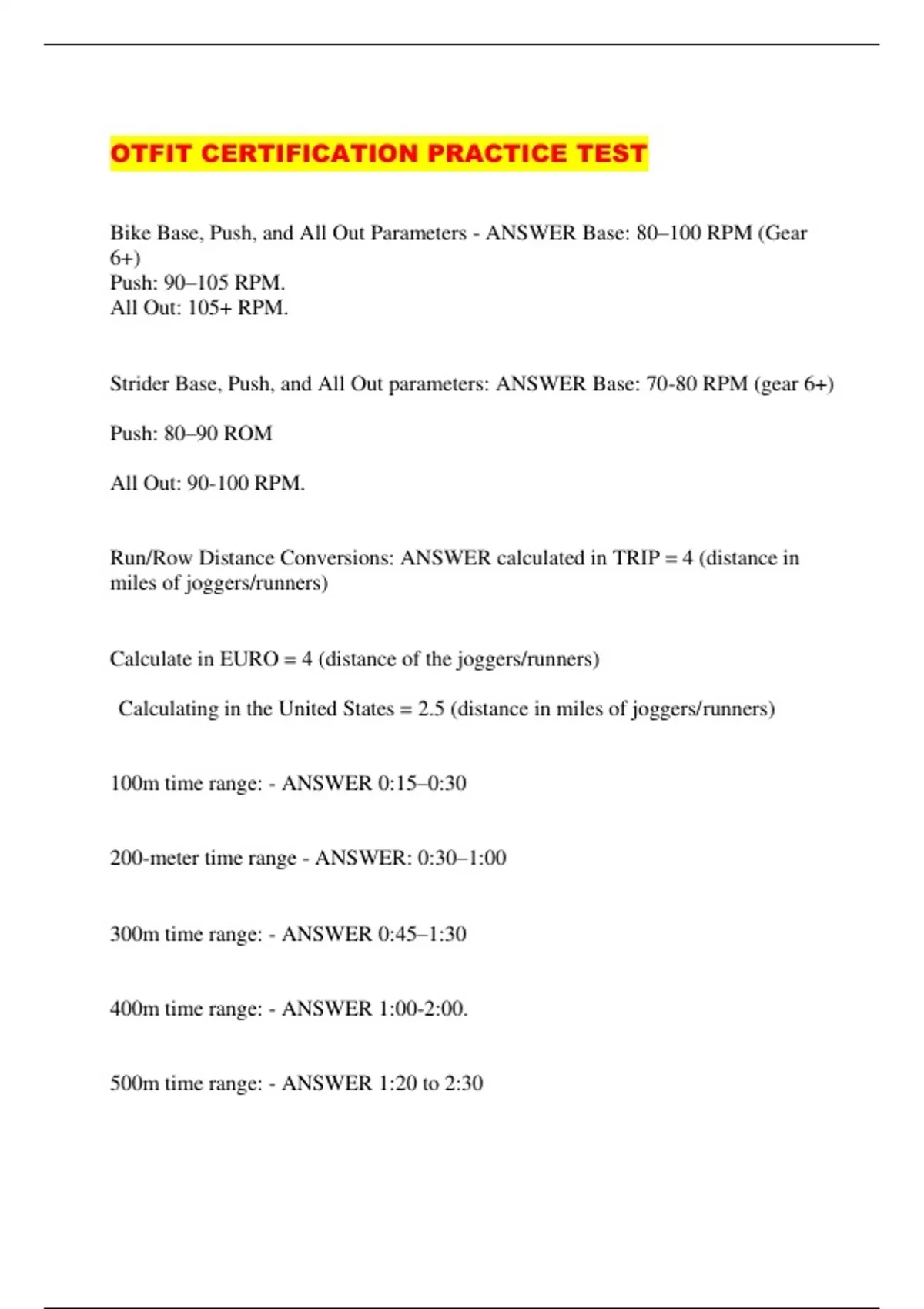 OTFIT CERTIFICATION PRACTICE TEST